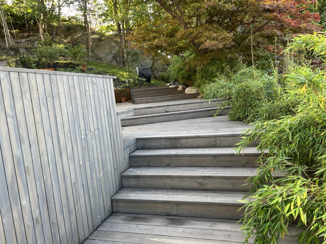 Vid utformning av utemiljön kommer trädgårdsnickerier många gånger med i någon omfattning. Vi har lång erfarenhet av olika material och utformningar.
