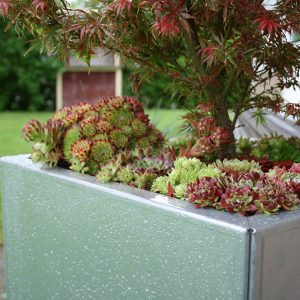 Magnolia Silvergrå är tillverkad av Magnelis som är en metallbelagd höggalvaniserad stålplåt, vilket ger ett beständigt ytskikt på planteringskärlet över tid.