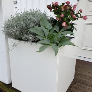 Magnolia Vit är tillverkad av Magnelis som är en metallbelagd höggalvaniserad stålplåt som pulverlackeras i vitt, vilket ger ett beständigt ytskikt på planteringskärlet över tid.