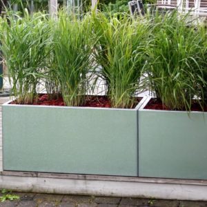 Magnolia Silvergrå är tillverkad av Magnelis som är en metallbelagd höggalvaniserad stålplåt, vilket ger ett beständigt ytskikt på planteringskärlet över tid.